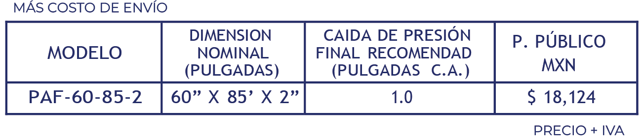 Rollo de filtro desechable compuesto por capas de fibra de vidrio grado comercial con una densidad uniforme retardante a la flama como medio filtrante, impregnadas con una resina adhesiva para mayor resistencia al flujo de aire y captura de partículas de pintura.